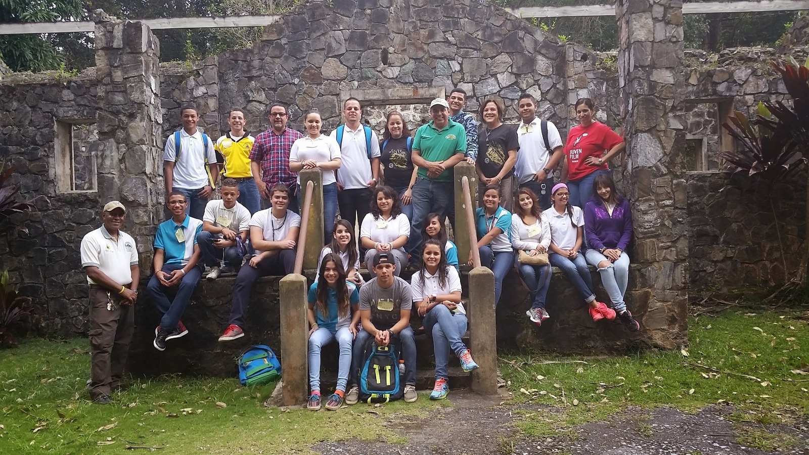 La profesora Lilly Ortiz tercera de derecha a izquierda en la primera fila con el grupo de Jiba Films, Documental Bosque de Maricao